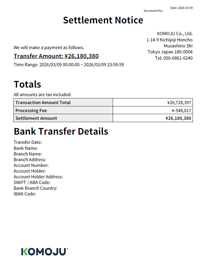 When selecting a payout cycle, please check the specifications for refunds via KOMOJU before making your selection.
