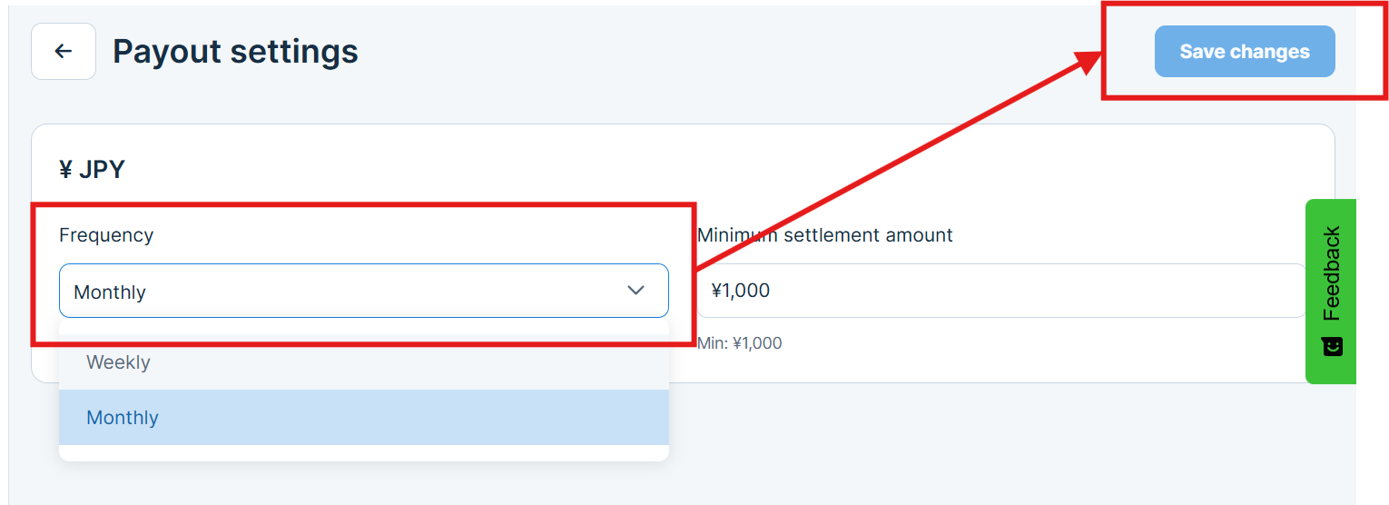 Step 3: Select your preferred payout frequency and click “Save Changes” on the right