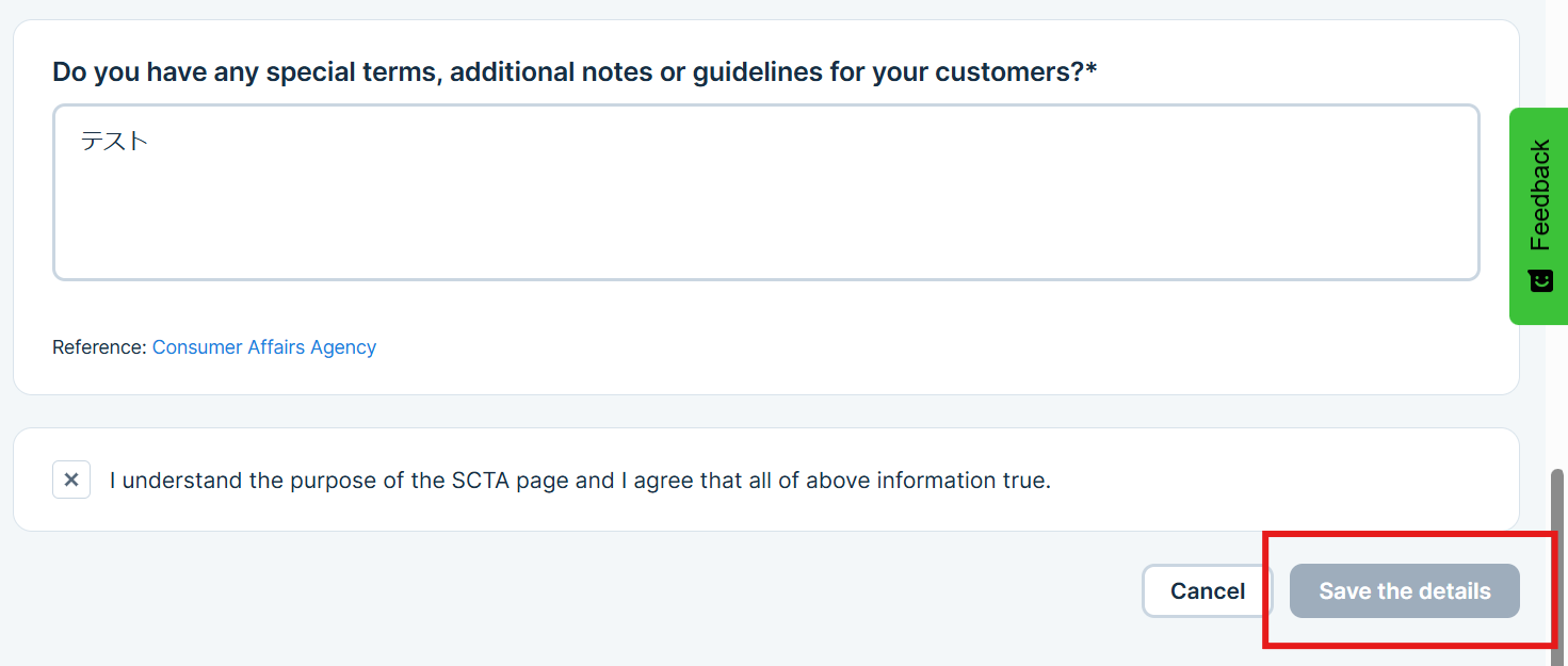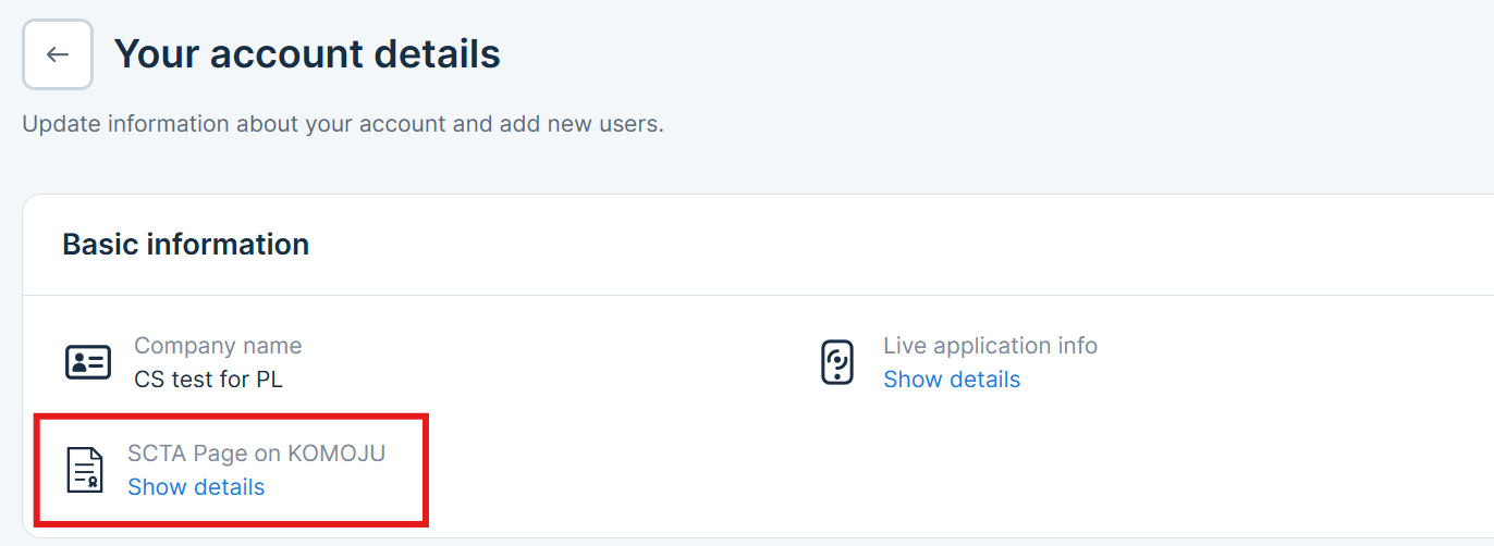 Step 2: Account details > SCTA Page on KOMOJU