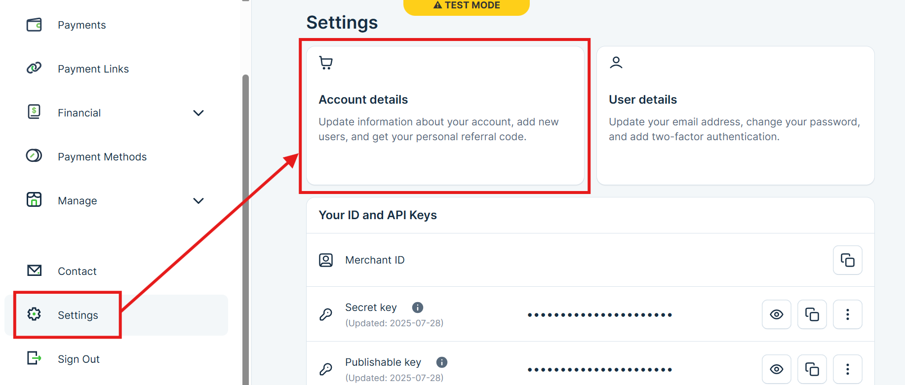 Step 1: KOMOJU > Settings
