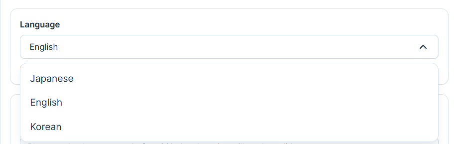 You can choose the language in which the checkout page is displayed. Currently, English, Japanese, and Korean are available.
