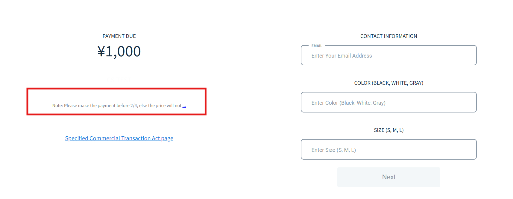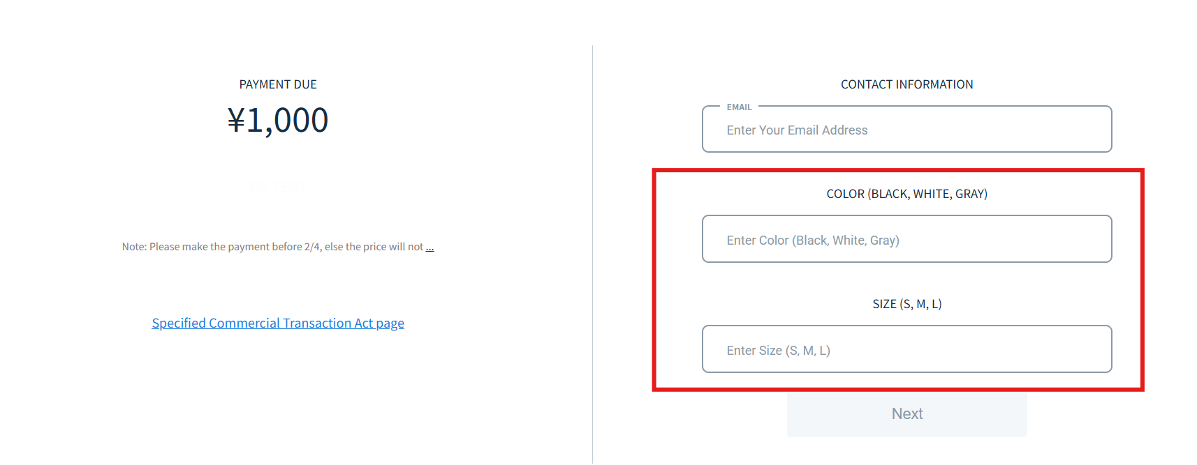 *A free-entry field will be displayed during checkout.