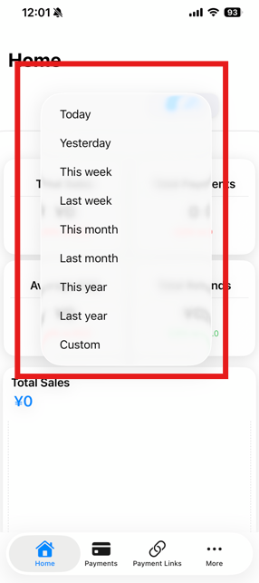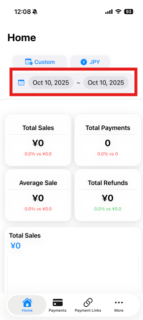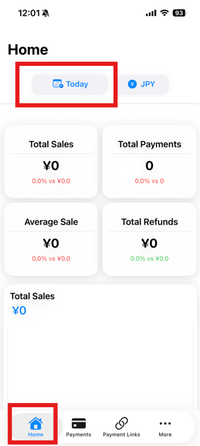 Step 1: Log in to KOMOJU Merchant App > Home > Tap the calendar icon