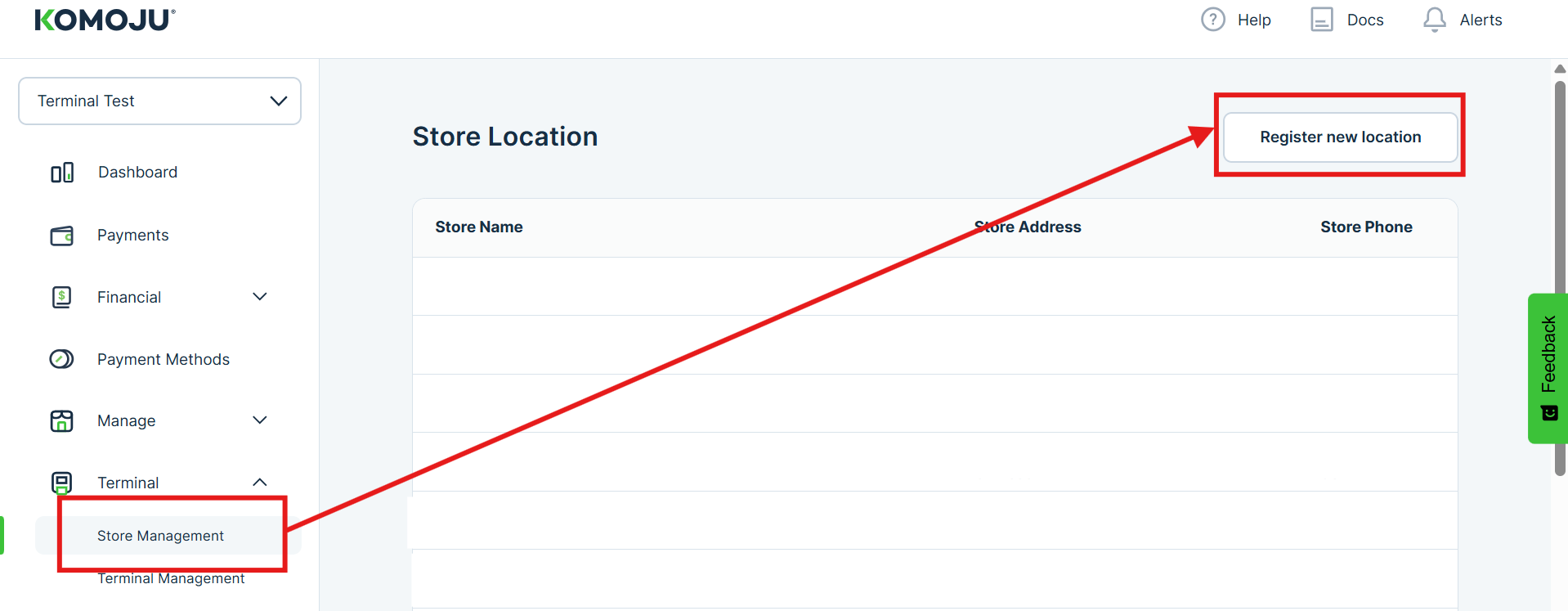 Step 1: Go to KOMOJU Dashboard > Terminal > Store Management