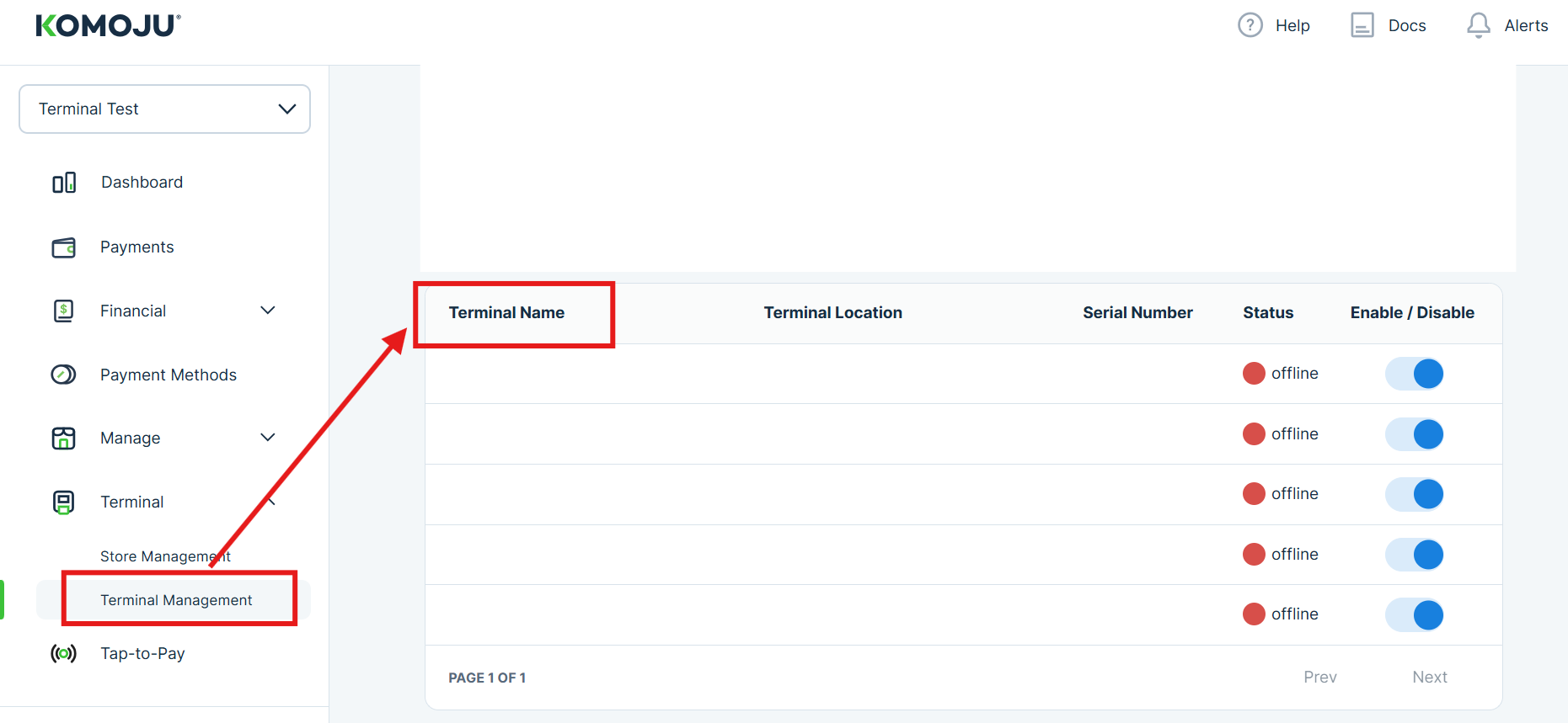 Step 3: Go to KOMOJU Dashboard > Terminal > Terminal Management