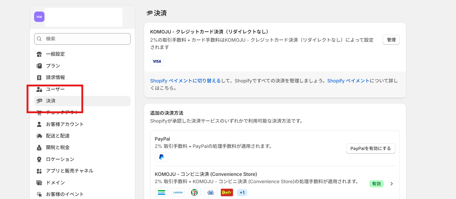 ※Shopify新APIでご利用の場合のみKOMOJUに連携されています。