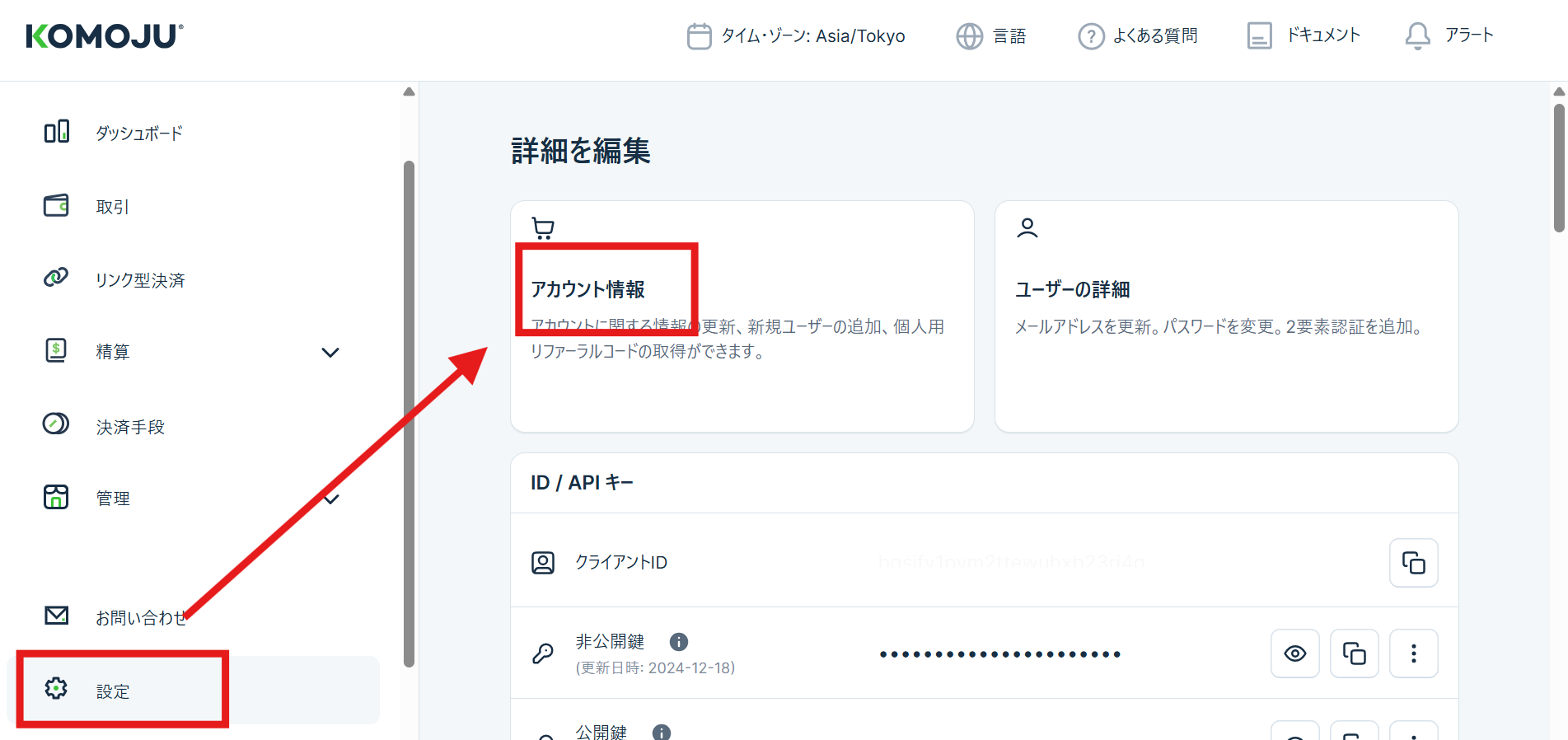 1. 「設定」>「アカウント情報」 の順でクリック
