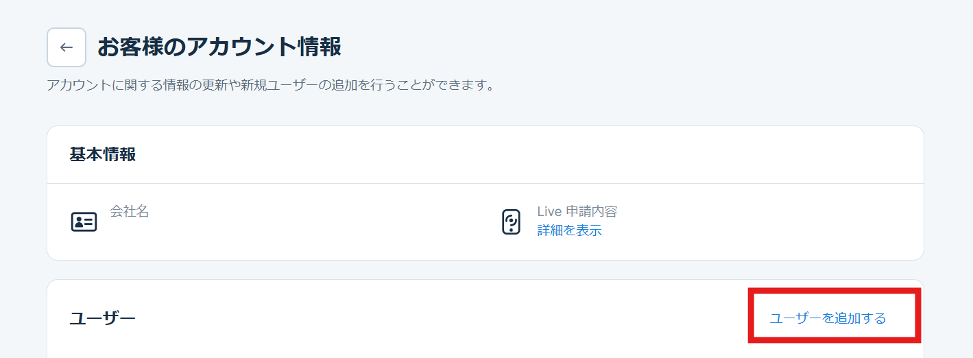 2. ユーザーの項目にある「ユーザーを追加する」をクリックしてください。
