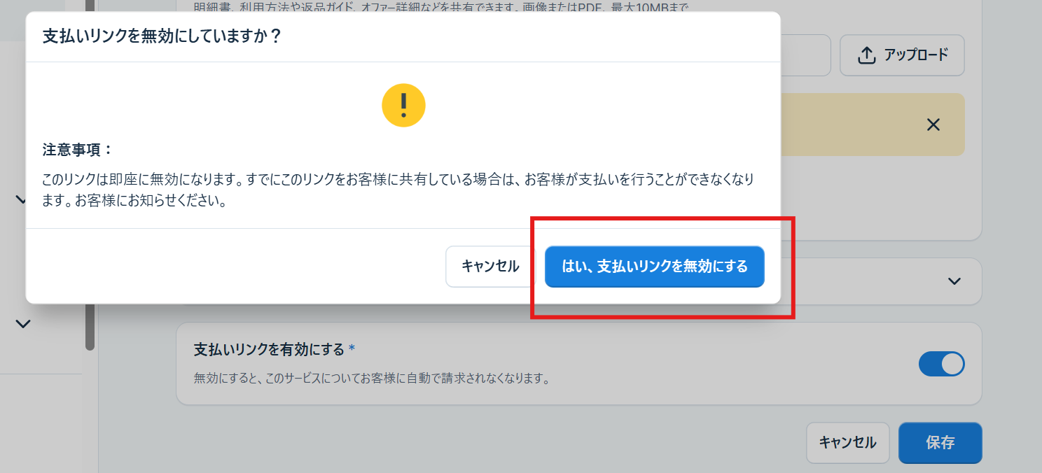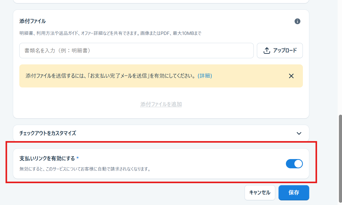 ステップ3:リンク型決済の情報を編集し保存を押します(※下記例)