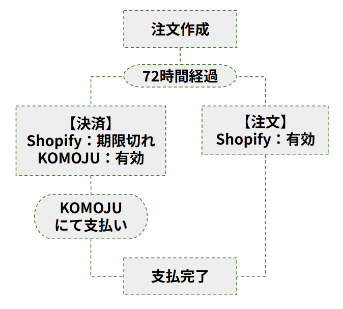 ①Shopify上では決済の期限が切れていても、KOMOJU上では決済が可能