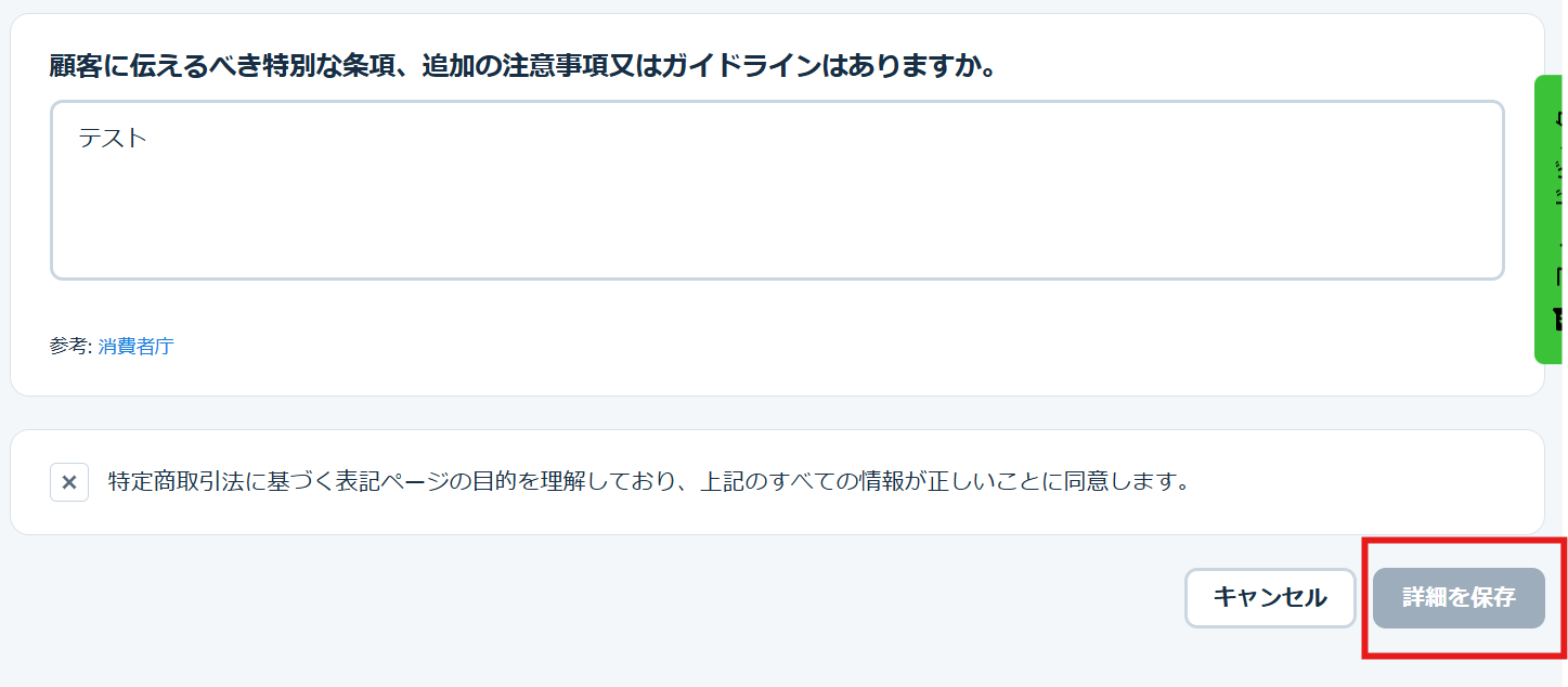 ステップ3:KOMOJUでの特定商取引法に基づく表記ページ>詳細を編集