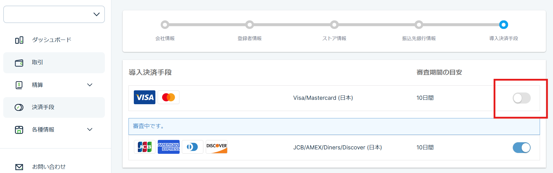 利用できる決済方法を増やしたい場合、下記手順にて追加申請をお願いいたします。