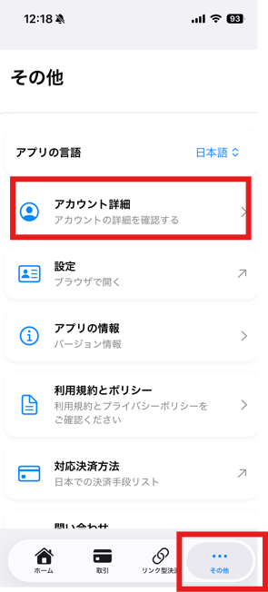 ステップ1:モバイルアプリにログイン > その他 > アカウント詳細