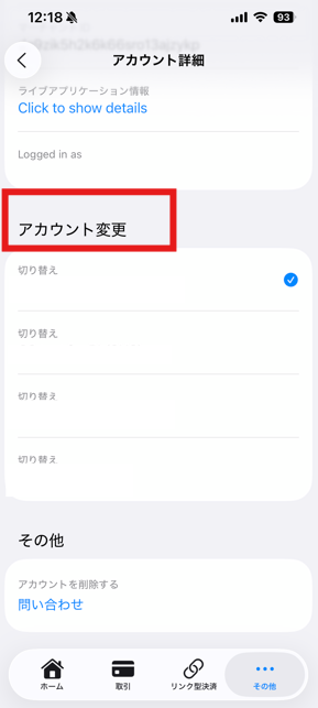 複数の加盟店アカウントを管理している場合、アプリ内の「その他 > アカウント」メニューから簡単に切り替えることができます。