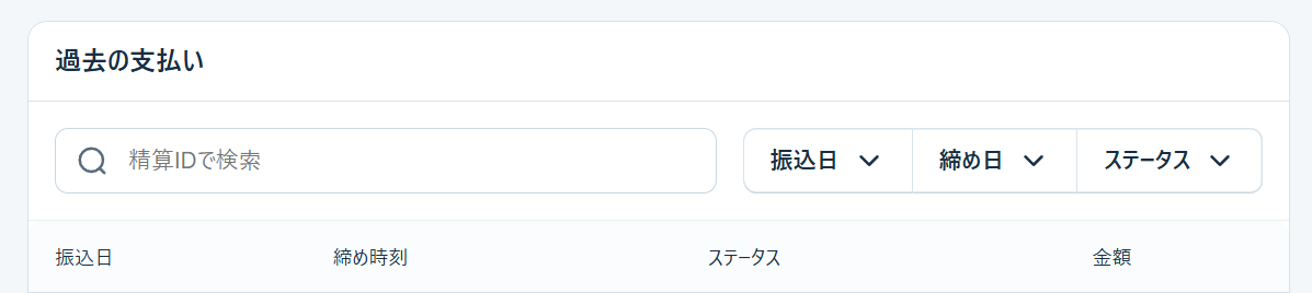 『過去の支払い』の項目のステータスには以下の種類がございます。